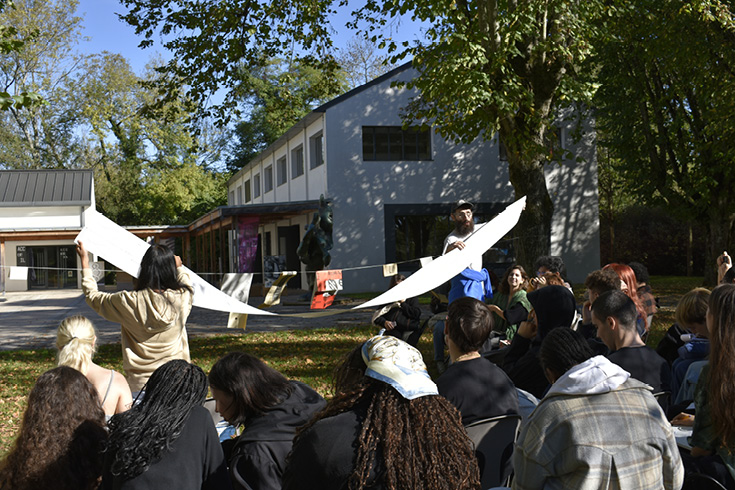 Workshop avec Alex Balgiu, en résidence d’auteur, et les étudiants L3 Arts, Design, Medias en octobre 2024 au Centre d’art.