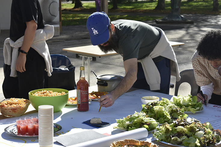 Lors de ce workshop avec Alex Balgiu, un déjeuner partagé et performatif est élaboré par les étudiants.