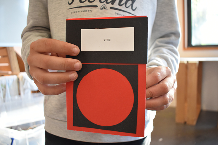 Atelier de création autour du vocabulaire formel de Camille Sauer, utilisé pour ses fresques – noir, rouge et blanc – pour développer un langage visuel personnel.