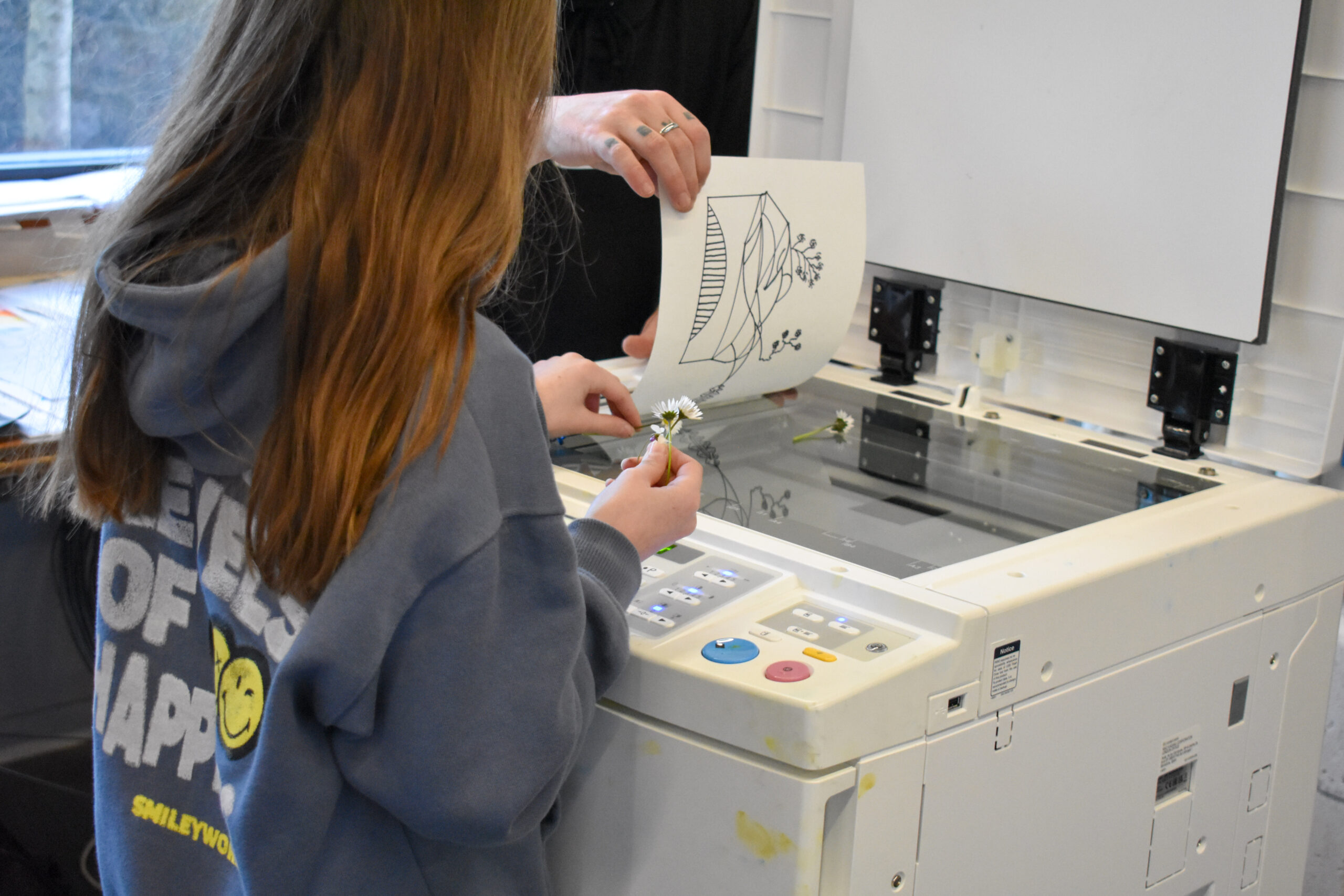 Temps d’atelier artistique avec l’utilisation du risographe, un outil permettant de réaliser des impressions colorées et artistiques, de manière simple et ludique.