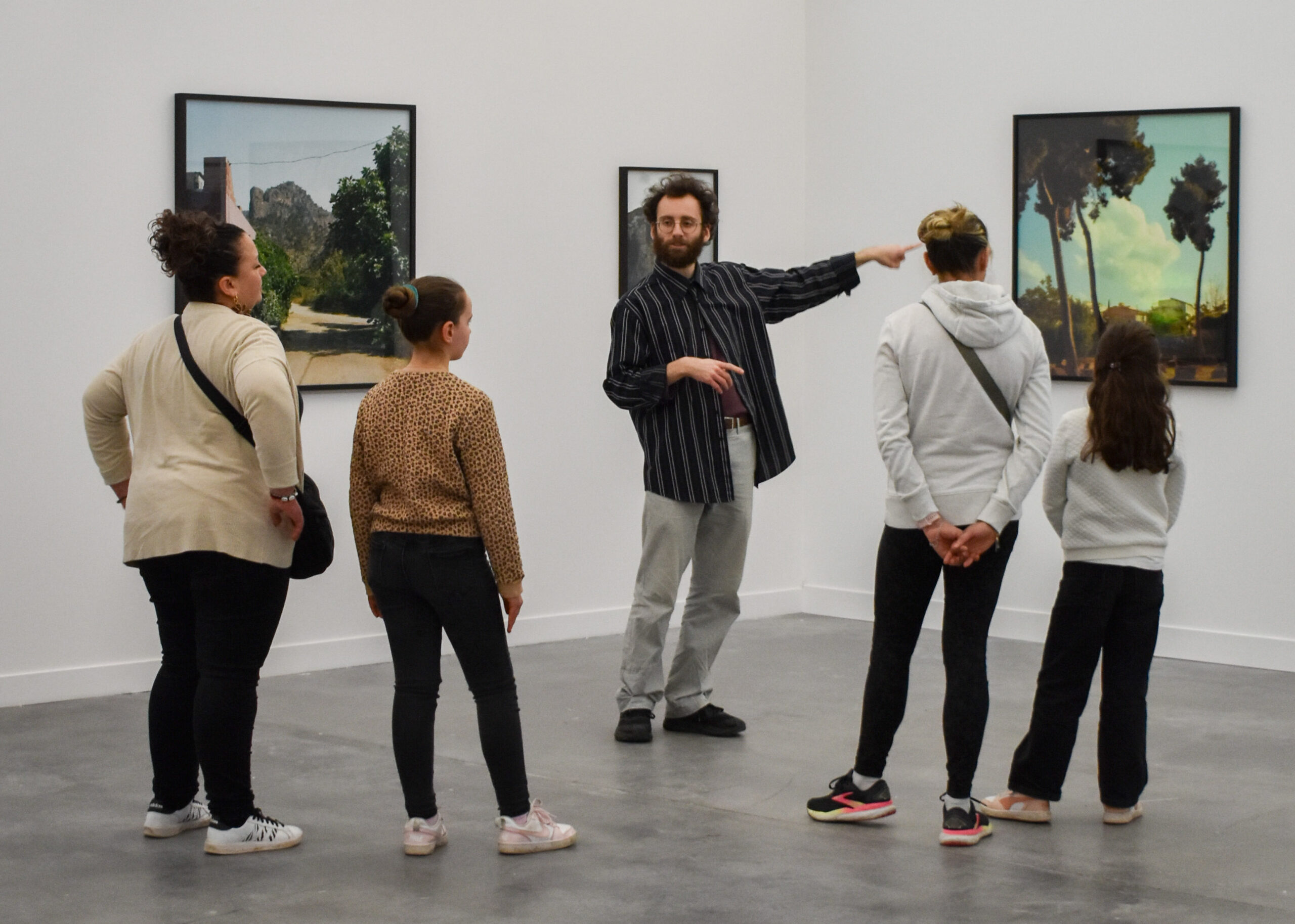 Visite de l’exposition Chambres avec vues de Florence Chevallier, présentée dans la Galerie Haute des Tanneries, en présence de familles.