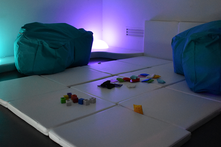 Vivre et explorer l'art autrementTablettes lumineuses, vidéoprojecteur, système sonore, tapis… L’espace sensoriel se fait lieu d’accueil et de découverte, où l’art se vit à travers les sens.