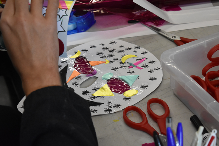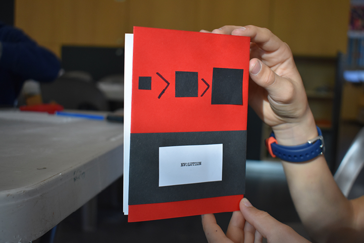 Atelier de création autour du vocabulaire formel de Camille Sauer, utilisé pour ses fresques – noir, rouge et blanc – pour développer un langage visuel personnel.