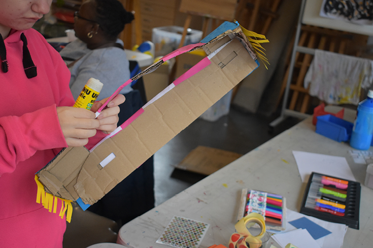 Les jeunes du DAME expérimentent textures et sons pour donner forme à des costumes pensés pour la performance filmée.